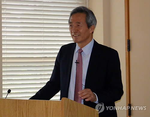 | △ 스탠퍼드대 강연하는 정몽준 (샌프란시스코=연합뉴스) 임화섭 특파원 = 정몽준 전 한나라당(현 새누리당) 대표가 15일(현지시간) 미국 스탠퍼드대 아시아태평양연구센터(APARC)에서 강연하고 있다. (정몽준 전 대표 트위터) |