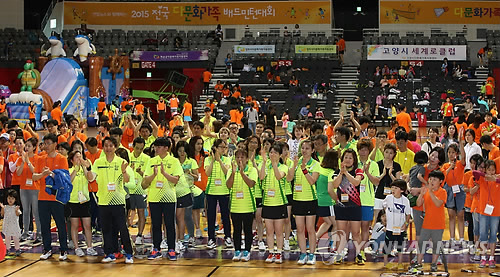 (서울=연합뉴스) 고현실 기자 = 전국의 다문화가족이 배드민턴으로 소통하고 화합하는 '2015 전국 다문화가족 배드민턴대회'가 16일 경기도 고양시 고양체육관에서 열렸다.