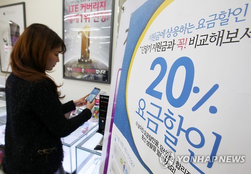 △ 휴대전화 요금할인율 20%로 상향(연합뉴스 자료사진)