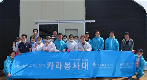 (서울=연합뉴스) 전준상 기자 = 롯데네슬레코리아의 반려동물 부문 네슬레 퓨리나는 동물보호시민단체인 카라와 함께 17일 경기 화성에 위치한 희망이네 유기견보호소에서 봉사활동을 진행했다고 18일 밝혔다.
