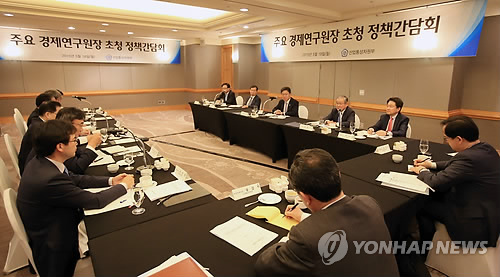 이번 간담회에는 산업연구원, 대외경제정책연구원, 한국개발연구원, 현대경제연구원, 한국경제연구원, 포스코경영연구원, SK경영경제연구소, LG경제연구원 등 8개 경제연구원이 참가했다.