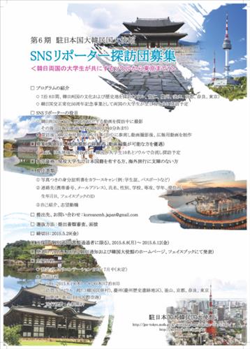(서울=연합뉴스) 강성철 기자 = 주일 한국대사관이 한·일 국교정상화 50주년 기념사업으로 양국의 대학생을 대상으로 'SNS(사회관계망서비스) 리포터 탐방단'을 모집한다.