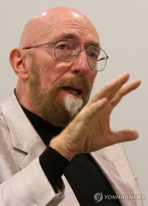 | △ 영화 '인터스텔라' 자문 맡은 킵손 박사 (서울=연합뉴스) 양지웅 기자 = 세계적인 이론 물리학자이자 영화 '인터스텔라'의 자문을 맡은 킵손 박사가 19일 서울 동대문디자인플라자에서 연합뉴스와 인터뷰를 갖고 있다. 2015.5.19 yangdoo@yna.co.kr |