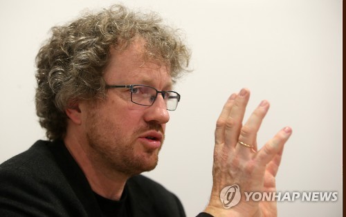 △ 토마스 헬룸 노르웨이 국영 방송국 PD (서울=연합뉴스) 양지웅 기자 = 토마스 헬룸 노르웨이 국영 방송국 NRK 프로듀서가 19일 서울 동대문디자인플라자에서 연합뉴스와 인터뷰를 갖고 있다. 2015.5.19 yangdoo@yna.co.kr
