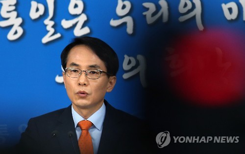 | △ 통일부 정례브리핑 (서울=연합뉴스) 전수영 기자 = 임병철 통일부 대변인이 20일 오전 정부서울청사에서 정례브리핑을 하고 있다. 정부는 이날 북한이 반기문 유엔 사무총장의 방북 허가 결정을 철회한 것에 대해 유감스럽다는 입장을 밝혔다. swimer@yna.co.kr |