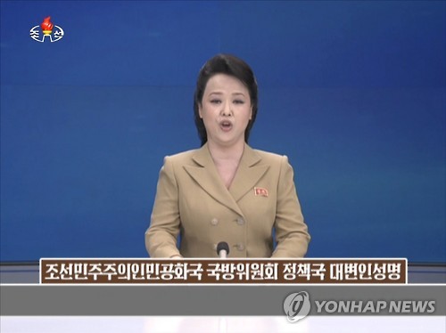 | △ 북한, "핵타격수단 소형화·다종화" 주장 (서울=연합뉴스) 북한 국방위원회 정책국은 20일 조선중앙TV를 통해 방송한 대변인 성명을 통해 "우리의 핵 타격 수단은 본격적인 소형화, 다종화 단계에 들어선지 오래"라면서 "중단거리 로켓은 물론 장거리 로켓의 정밀화, 지능화도 최상의 명중 확률을 담보할 수 있는 단계"라고 주장했다. 2015.5.20 nkphoto@yna.co.kr |