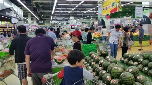 시범 매장에서는 수박 판매대에 당도 등 품질 정보가 담긴 홍보물을 게시하고 시식 행사를 열어 꼭지가 없어도 수박 신선도를 판단할 수 있도록 했다.