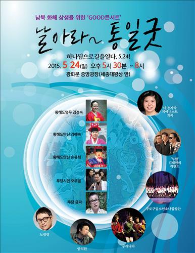 (서울=연합뉴스) 이상현 기자 = 남북경협기업비상대책위원회 등 100여개 경협·종교·시민단체는 오는 24일 오후 5시30분 서울 광화문 중앙광장에서 '5·24조치 해제를 위한 GOOD(굿) 콘서트 '날아라~통일굿'을 개최한다고 21일 밝혔다.