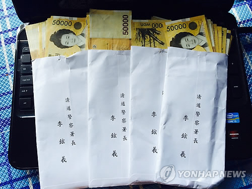 △ 청도 송전탑 건설에 반대해 온 주민에게 전달한 돈 봉투. (연합뉴스 자료사진)