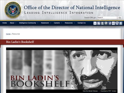20일(현지시간) 미국 국가정보국이 공개한 정보 '빈라덴의 서재'에는 이런 독서 성향을 보여주는 책을 포함해 409건의 문건이 있었다.