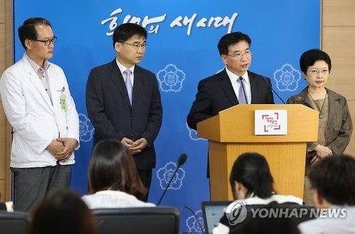| △ '메르스' 대책 발표하는 질병관리본부장 (서울=연합뉴스) 황광모 기자 = 양병국 보건복지부 질병관리본부장이 21일 오후 서울 세종로 정부서울청사에서 중동호흡기증후군(MERS) 국내 환자 발생 관련 조치 및 대책을 발표하고 있다. 질병관리본부는 '중동호흡기증후군(메르스)'의 세 번째 감염자가 확인됐다고 밝혔다. 세 번째 감염자는 첫 감염자와 같은 병실을 쓰던 70대 남성으로, 가족이 아닌 첫 번째 2차 감염자다. |