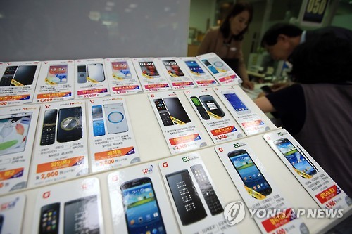 | △ 알뜰폰 가입자 500만 돌파 (서울=연합뉴스) 홍해인 기자 = 반값 휴대전화를 표방하며 2012년 8월 국내에 도입된 알뜰폰 가입자가 500만명을 돌파했다. 전체 이동전화 시장에서 알뜰폰은 8.81%의 점유율을 차지하며 10% 고지를 눈앞에 두고 있다. 알뜰폰은 기존 이동통신사업자로부터 망을 임차해 이용자에게 자체 브랜드로 통신서비스를 제공하는 이동통신재판매(MVNO) 서비스다. 사진은 21일 오후 서울 광화문우체국 알뜰폰 판매대에서 고객들이 가입 상담을 하는 모습. |