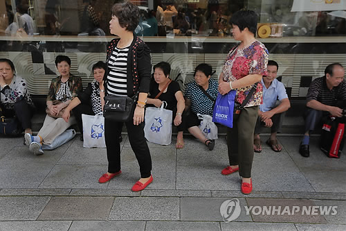| △ 도쿄에 여행 온 중국인들이 백화점 앞에 앉아 쉬고 있다.(연합뉴스 자료사진) |