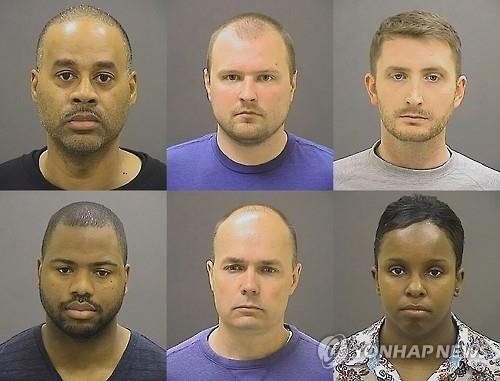 (볼티모어·워싱턴 AP·AFP=연합뉴스) 미국 볼티모어에서 발생한 흑인 청년 사망사건의 피의자인 경찰관 6명이 21일(현지시간) 대배심으로부터 기소 평결을 받았다.