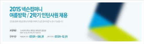 (서울=연합뉴스) 고상민 기자 = 게임 기업 넥슨과 넥슨지티는 다음 달 8일까지 2015년도 여름방학(단기) 및 2학기(장기) 인턴사원을 공개 채용한다고 22일 밝혔다.