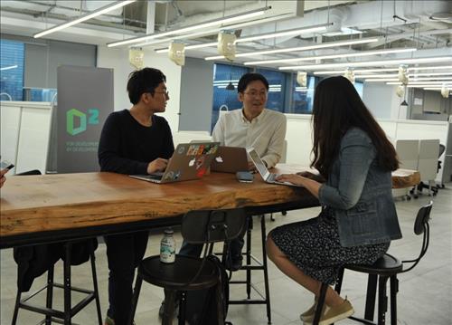 (서울=연합뉴스) 윤보람 기자 = 네이버는 테크 스타트업 생태계 구축과 기술 인재 양성을 위한 프로젝트 공간인 'D2 스타트업 팩토리'(D2SF)를 서울 강남에 개소했다고 22일 밝혔다.