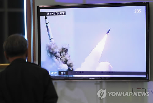 | △ 북한은 전략잠수함 탄도미사일(SLBM) 수중시험발사 성공 등 자신들의 핵 무장력이 '평화와 안정을 수호하기 위한 정의로운 것'이라고 주장하고 남측이 시비를 걸어선 안된다고 위협했다. 사진은 지난 10일 오후 서울역에서 시민들이 북한의 미사일 위협 관련 뉴스를 보고 있는 모습. |