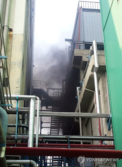 △ SK케미칼 울산공장서 화재 (울산=연합뉴스) 김근주 기자 = 25일 오후 SK케미칼 울산공장에서 화재가 발생했다. 인명피해는 없었으나 연기가 다량으로 발생했다. 2015.5.25 canto@yna.co.kr