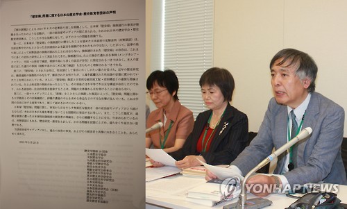 일본 역사학연구회를 비롯한 16개 역사 연구·교육 관련 단체는 이날 중의원 제2의원회관에서 성명을 발표하고 "강제연행된 위안부의 존재는 그간의 많은 사료와 연구에 의해서 실증돼 왔다"고 밝혔다.