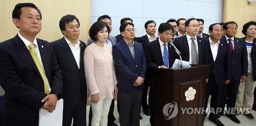 새 CI '날치기' 항의 새정치민주연합 청주시의원들 보이콧