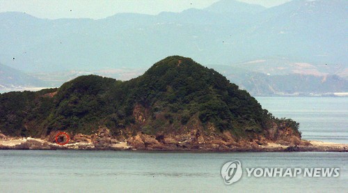 | △ 북한, 연평도 북쪽 갈도에 122mm 방사포 진지 건설 (서울=연합뉴스) 북한이 연평도 바로 앞 무인도인 '갈도'에 122㎜ 방사포 진지를 구축하는 것으로 분석됐다. 26일 군 당국에 따르면 북한은 지난 3월부터 병력과 장비를 동원해 갈도에서 터파기 공사를 진행해오다가 최근 벙커 형태의 5개의 유개화(덮개가 있는) 진지를 완공했다. 2009년 5월 28일 연평도에서 바라본 갈도. 붉은 원안은 당시 군당국이 북한이 해안포를 배치한 것으로 추정한 동굴진지. 2015.5.26 << 연합뉴스 DB >> jeong@yna.co.kr |