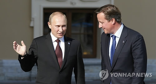 △ 블라디미르 푸틴 러시아 대통령과 데이비드 캐머런 영국 총리. (AP=연합뉴스 자료사진)