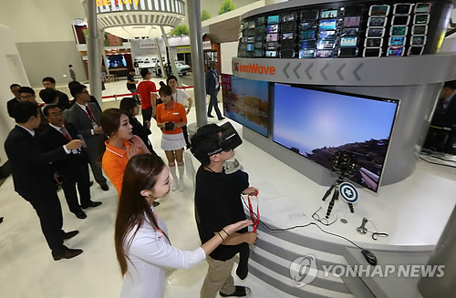 | △ '월드IT쇼'의 SKT 부스를 찾은 관람객들이 각종 전시품을 체험하고 있다.(연합뉴스 자료사진) |