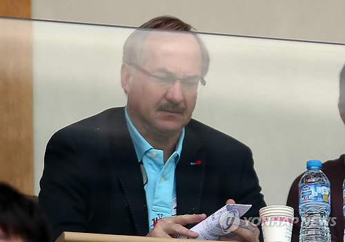 △ 문수축구장 찾은 슈틸리케 축구 국가대표팀 감독 (울산=연합뉴스) 김용태 기자 = 10일 울산 문수축구경기장에서 열린 2015 K리그 클래식 울산 현대와 전북 현대의 경기. 슈틸리케 축구 국가대표팀 감독이 관중석에서 경기를 지켜보고 있다. 2015.5.10 yongtae@yna.co.kr