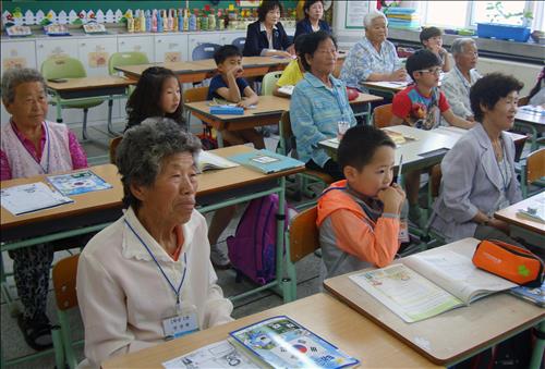 노인 17명 초평초등생들과 공동 수업…"교실 들어서는 순간 평생 못잊을 감동"