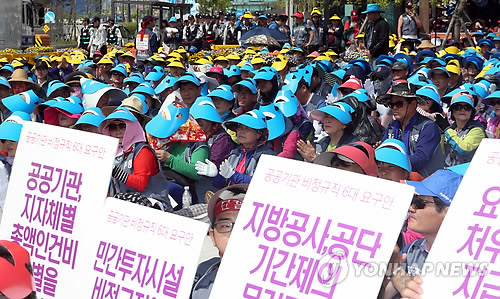 | △ 공공비정규직노조 소속 노조원들이 정규직 전환을 촉구하고 있다.(연합뉴스 자료사진) |