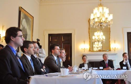 | △ 차세대 지일파학자의 육성을 목표로 2015년 5월 21일(현지시간) 미국 워싱턴의 주미일본대사관이 개최한 학습 모임에서 참석자들이 자리에 앉아 있다.(교도=연합뉴스 자료사진) |