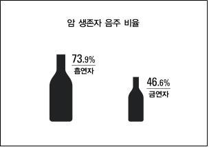 눈여겨볼 대목은 담배를 피우는 암 경험자의 음주율이 73.9%로, 담배를 피우지 않는 암 경험자의 음주율(46.6%)보다 훨씬 높았다는 점이다.