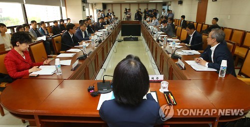 | △ 메르스 대응 대책 회의 (서울=연합뉴스) 김도훈 기자 = 28일 오후 서울 마포구 건강보험공단에서 복지부 장옥주 차관이 중동호흡기증후군(MERS·메르스) 대응 대책회의를 주재하고 있다. 이날 보건복지부는 국내 메르스의 추가 확산을 막기 위해 확진 환자와 밀접하게 접촉한 사람 가운데 자가(自家) 격리 대상 누락자가 있는지 전수 재조사하겠다고 밝혔다. |