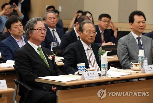 | △ 5ㆍ31 교육개혁 20주년 기념 학술세미나 (서울=연합뉴스) 전수영 기자 = 안병영(왼쪽) 전 교육인적자원부 부총리 등 참석자들이 29일 오전 서울 세종문화회관 예인홀에서 열린 5ㆍ31 교육개혁 20주년 기념 학술세미나에서 황우여 사회부총리 겸 교육부 장관의 축사를 듣고 있다. 오른쪽부터 서남수, 이명현 전 교육부 장관, 안병영 전 부총리. 2015.5.29 swimer@yna.co.kr |