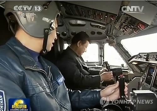 △ 공군부대를 시찰 도중 폭격기 조종을 체험하고 있는 시진핑