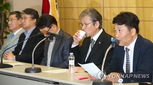 | △ (서울=연합뉴스) 임헌정 기자 = 박상근 대한병원협회장(오른쪽 두번째)이 30일 서울 마포구 대한병원협회에서 중동호흡기증후군(메르스) 관련 성명서를 발표하기에 앞서 물을 마시고 있다. 이날 대형 병원장들은 메르스 관련 긴급회의를 열고 이어 대국민 성명서를 발표했다. 이들은 "메르스 확산 방지와 감염 환자의 치료를 위해 정부 대책에 적극적으로 협조하고 최선을 다해 진료에 전념하겠다"면서 "국민들은 너무 불안해하지 말고 정부와 의료계를 믿어달라"고 말했다. 2015.5.30 kane@yna.co.kr (끝) |