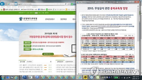 | △ 충북교육청이 홈페이지 통해 밝힌 무상급식 입장 (청주=연합뉴스) 무상급식비 분담을 둘러싸고 충북도와 갈등을 빚는 충북도교육청이 사실상 충북도와의 전면전을 선포하고 홈페이지를 통해 선전전에 나섰다. 사진은 홈페이지를 통해 밝힌 충북도교육청의 무상급식과 관련한 입장. 2015.5.27 <<충북도교육청 홈페이지 캡처>> |