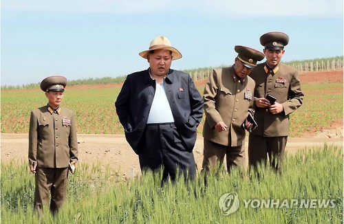 △ 북한 김정은, 군부대 산하 종자연구농장 시찰 (서울=연합뉴스) 김정은 북한 국방위원회 제1위원장이 인민군 제810군부대 산하 1116호 농장을 시찰했다고 노동신문이 1일 전했다. 2015.6.1 nkphoto@yna.co.kr