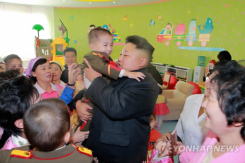 | △ (평양 조선중앙통신=연합뉴스) 북한 김정은 국방위원회 제1위원장이 지난 1월 1일 고아원인 평양육아원·애육원을 방문했을 당시 조선중앙통신이 보도한 사진. photo@yna.co.kr |