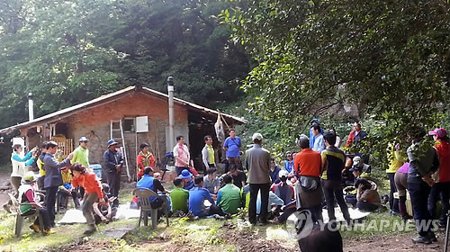 | △ 손학규 칩거 강진 토담집 북적 (강진=연합뉴스) 정계 은퇴를 선언한 이후 새정치민주연합 손학규 전 상임고문이 칩거 중인 전남 강진 토담집이 문전성시를 이루고 있다. 지난 10일 토담집을 찾은 방문객들이 손 전 고문과 문안 인사를 나누며 뜻깊은 시간을 갖고 있다. 2015.5.11 <<박동인 제공>> chogy@yna.co.kr |