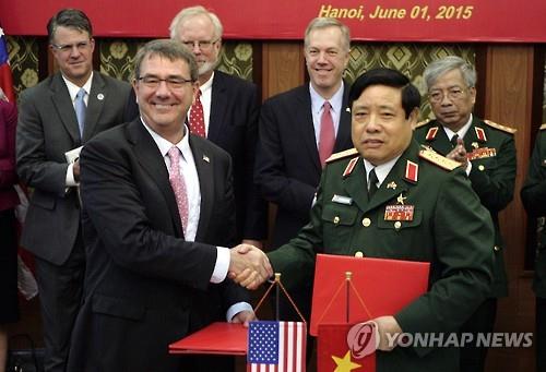 애슈턴 카터 미국 국방장관과 풍 꽝 타잉 베트남 국방장관은 1일 베트남 수도 하노이에서 동남아시아와 아시아·태평양지역의 평화와 안정을 위해 상호 협력을 강화하는 내용의 공동 비전 성명에 서명했다.