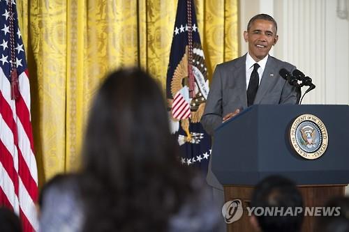| △ (epa=연합뉴스) 버락 오바마 미국 대통령이 1일 백악관에서 열린 동남아시아 청년 리더들과의 타운홀 미팅에서 참석자의 질문에 답하고 있다. |