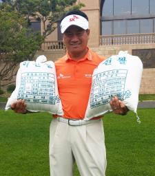 (서울=연합뉴스) 최태용 기자 = 프로골퍼 최경주(45·SK텔레콤)가 '라이스 버킷 챌린지' 행사에 동참해 쌀 300㎏을 기부했다.