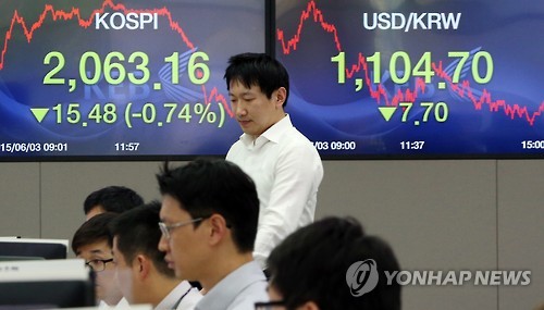 엔저·메르스 악재 연일 '맹위'…코스피 2,060선 후퇴(종합)