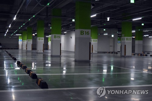 | △ 메르스 여파…텅 빈 병원 주차장 (수원=연합뉴스) 이영주 기자 = 3일 중동호흡기증후군(메르스) 확산여파로 경기도 한 병원 지하주차장이 텅 비었다. 이 병원 직원은 "입원했던 환자들도 퇴원하고 있어 평소 만차였던 주차장이 텅 비었다"고 설명했다. |