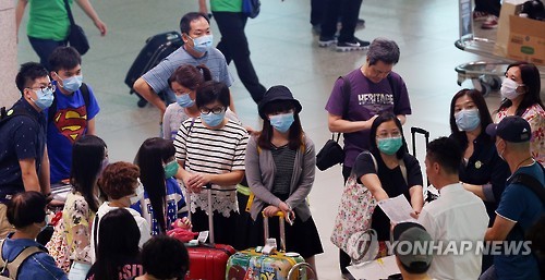 △ 영종도 인천국제공항을 통해 한국을 찾은 관광객들이 마스크를 착용하고 있다. (연합뉴스 자료사진)