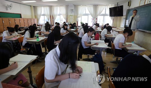 | △ 전국 대학수학능력시험 모의고사 (서울=연합뉴스) 최재구 기자 = 대학수학능력시험 모의고사가 치러진 4일 서울 종로구 안국동 풍문여자고등학교에서 학생들이 시험을 치르고 있다. |