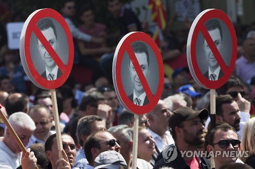 △ 지난달 17일 열린 마케도니아의 반정부 시위 모습(자료사진)