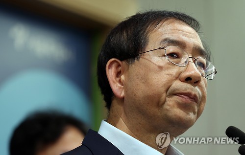 △ 굳은 표정의 박원순 시장 (서울=연합뉴스) 신준희 기자 = 박원순 서울시장이 4일 오후 시청 브리핑룸에서 메르스 관련 긴급 브리핑을 하고 있다. 박 시장은 "메르스 확진 환자인 서울의 한 의사가 격리 통보에도 불구하고 1천400명 규모의 행사에 참석했다"고 밝혔다. 2015.6.4 hama@yna.co.kr