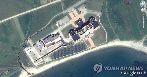 | △ 북한, 나선 황제호텔 앞에 대형 태양열발전판 설치 (서울 구글=연합뉴스)북한이 나선 경제특구의 황제호텔 건물 앞에 대형 태양열판을 설치한 것으로 확인됐다. 2013년 9월 촬영한 구글 위성사진을 보면 황제호텔 앞에는 총 길이 140m에 달하는 태양열판 355개가 설치돼있다. |